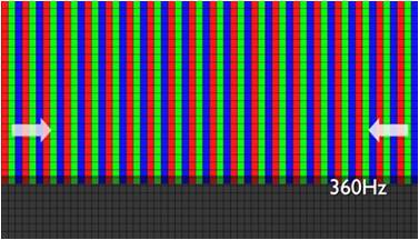 AUO 雙向驅動技術在X軸方向的兩側同時對面板畫素提供驅動電壓,進而讓畫面上每個畫素都能在更短時間內顯示正確的色彩。