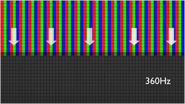 傳統液晶驅動是從左到右單向進行,在畫面更新速度愈來越愈快的情況下,位于驅動線路末端的右下角區域,畫素的閘極來不及在短時間內獲得足夠電壓,無法顯示出正確的顏色資訊。