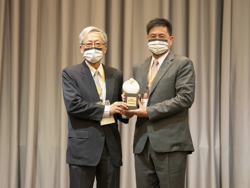 友達董事長暨執(zhí)行長彭雙浪 (右) 獲頒潘文淵文教基金會 ERSO Award,以其推動高附加價值顯示技術(shù),帶動產(chǎn)業(yè)升級轉(zhuǎn)型,獲得高度肯定 (圖左頒獎人:潘文淵文教基金會董事長史欽泰)